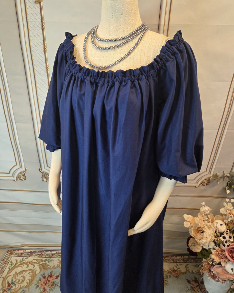 Chemise - Midi / Tea Length- 3/4 Length Sleeve - Navy Cotton